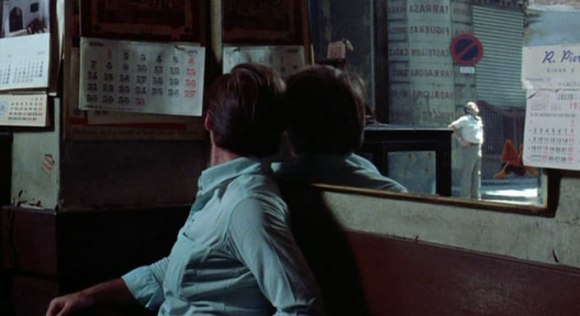 From Antonioni’s first feature film, Cronaca di un amore, Antonioni expresses his fondness for inviting his audience to confuse one character with another. In this latter film, there is an indoor scene in which Paola first broaches the subject of killing her husband to her lover, Guido. The scene is immediately followed by an outdoor shot of a commercial street in Milano in which a young couple are seen walking on the sidewalk towards the foreground. From a distance, the couple strongly resembles Paola and Guido, not only because of their physical characteristics but because the preceding scene would also imply that this couple would be the same hero and heroine of the film. Antonioni’s camera follows the couple as they approach us until we discover that the couple are complete strangers. Hitchcock invites a similar trap for both the James Stewart character and we the audience when in Vertigo we are momentarily uncertain who is the blond woman seated in Ernie’s restaurant in San Francisco: is the woman the supposedly dead Madeleine, or someone else? In fact, Hitchcock repeats this “trick” several times in the second half of Vertigo, so much so that we “see” that the James Stewart character “sees” Madeleine, his lost love, everywhere he looks.